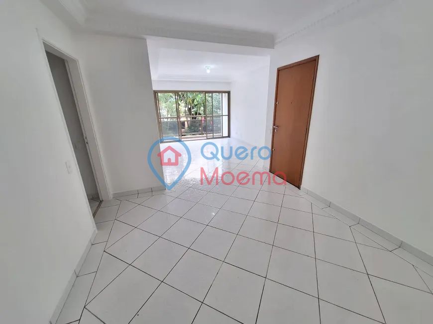 Excelente apartamento com 104m² em Moema Índios, fora da rota de aviões, com sala ampla, dois ambientes, varanda espaçosa com vista privilegiada para o belo jardim e árvores de entrada do condomínio.